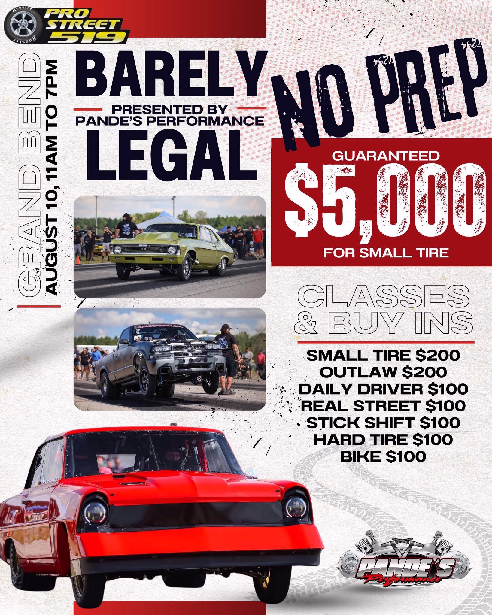 Backed by Pro Street 519 and Pande’s Performance, this is no-prep racing in its natural habitat: questionably grippy, fully chaotic, and somehow still legal (we think).
